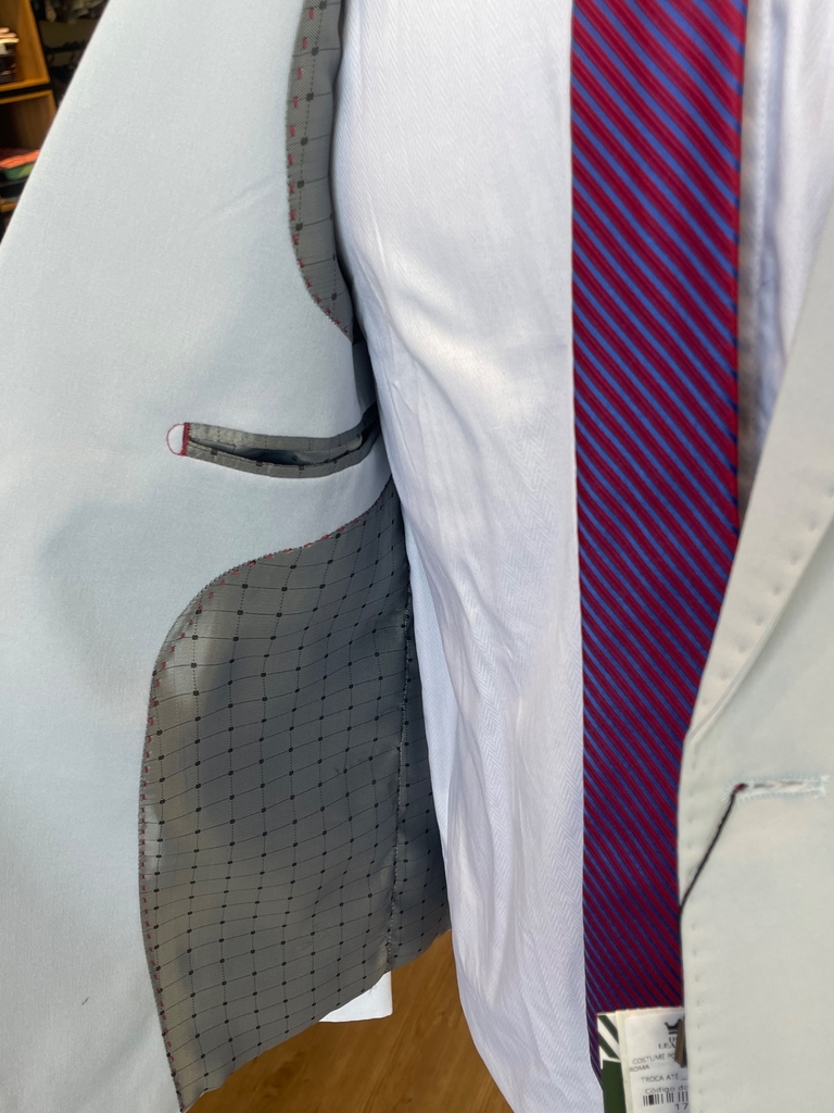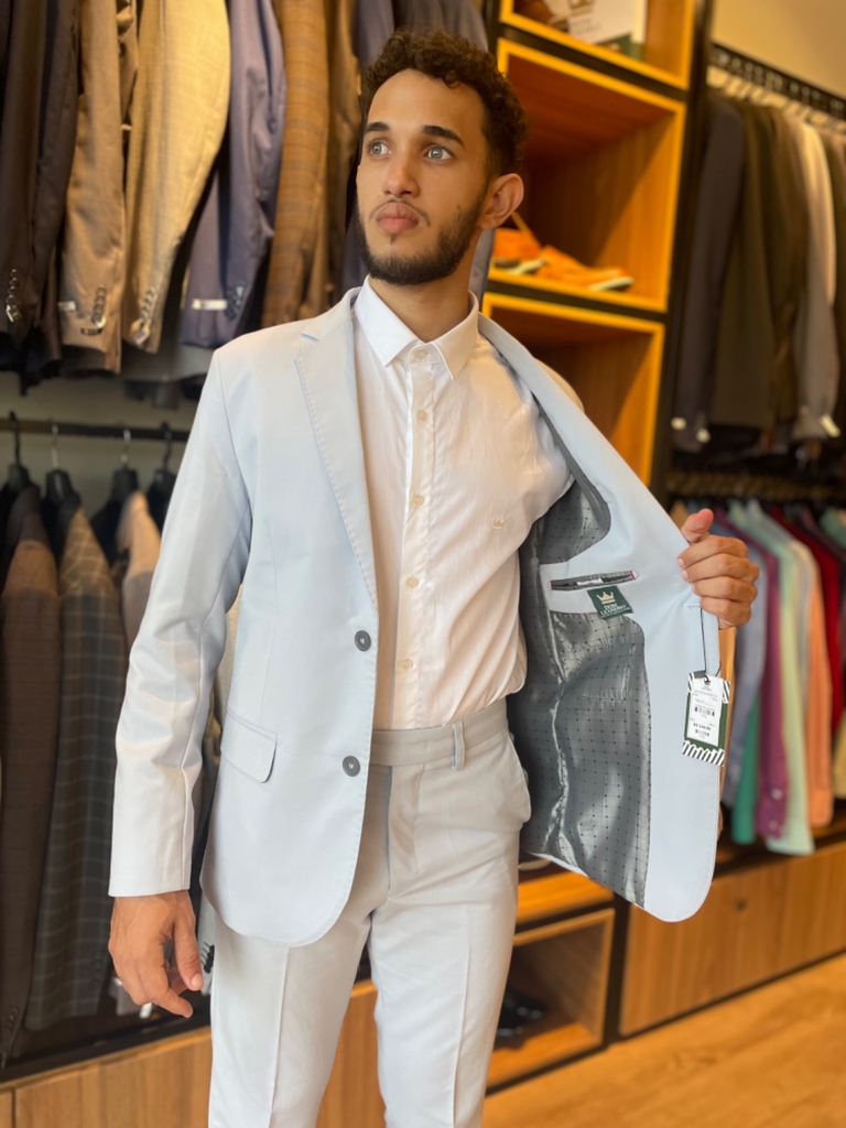Costume Semi Slim Tecido Poliviscose, 2 Botões, Corte Italiano. Parte interna em forro trabalhado, calça com aviamentos reforçados.